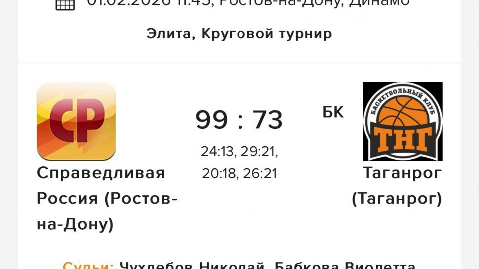 В минувшее воскресенье баскетбольная команда регионального отделения партии СПРАВЕДЛИВАЯ РОССИЯ одержала очередную уверенную победу в матче с БК "Таганрог" в рамках игр Ростовской баскетбольной лиги.