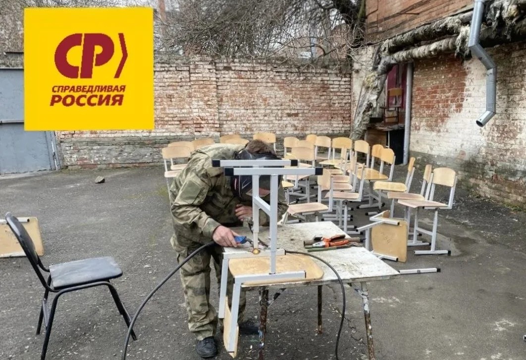 Председатель Совета Новочеркасского отделения СПРАВЕДЛИВОЙ РОССИИ Олег Фомин и активисты партии продолжают ремонтировать мебель для школы.