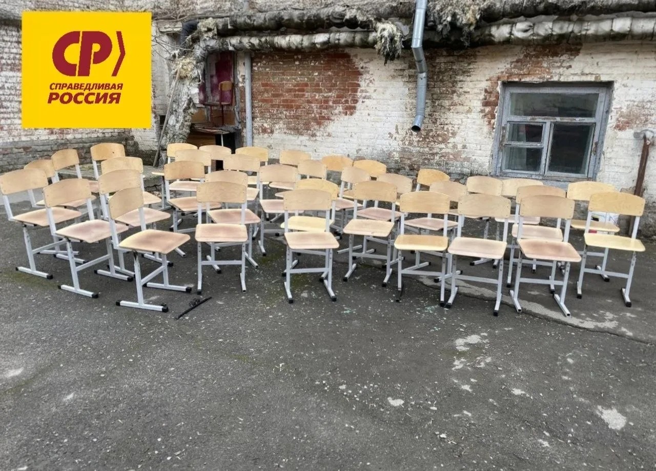 После прошлой публикации о помощи в ремонте стульев к руководителю Новочеркасской партийной организации Олегу Олеговичу Фомину обратился заместитель директора по АХР МБОУ СОШ N5 им. Г.А. Сорокина Владимир Евгеньевич Б. с просьбой отремонтировать остальные стулья.