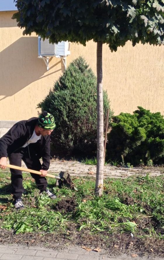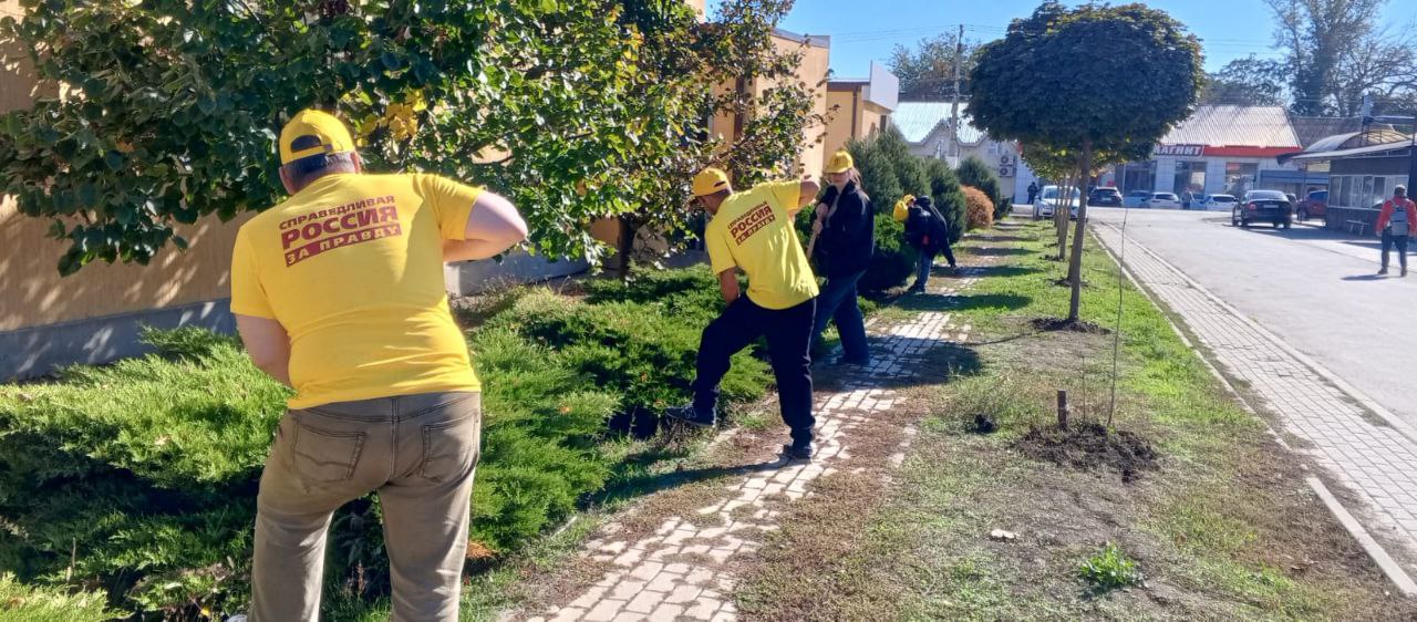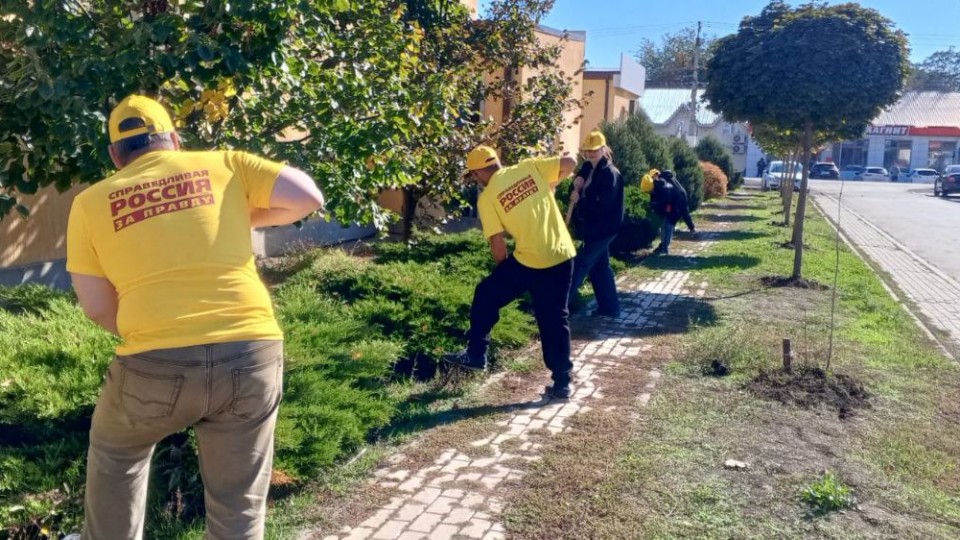 В хуторе Ленинаван активисты и сторонники партии навели порядок около спортивной школы и на аллее, ведущей в парк.