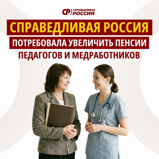 Законопроект об увеличении пенсий педагогических и медицинских работников внёс в Госдуму Председатель партии СПРАВЕДЛИВАЯ РОССИЯ Сергей Миронов.