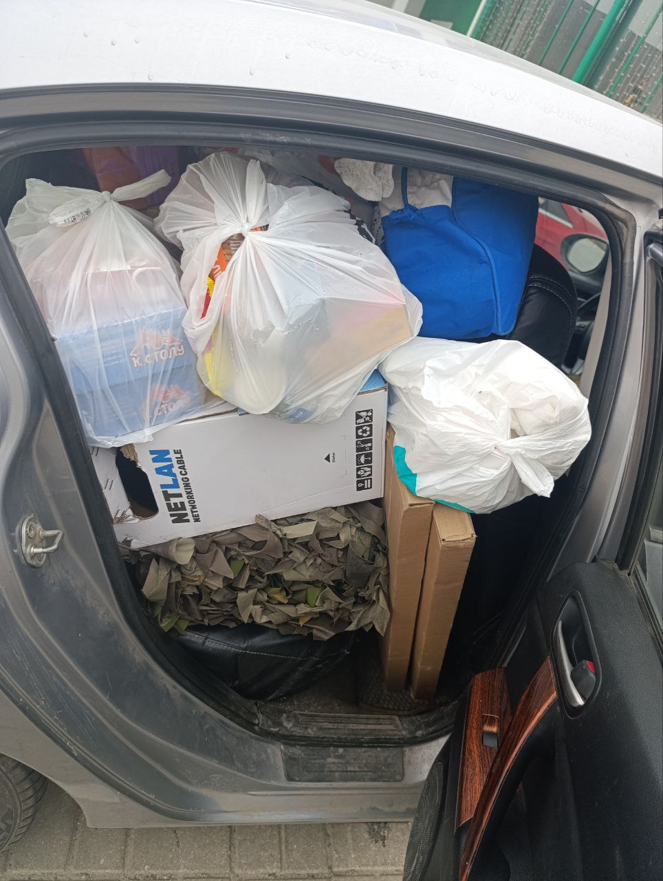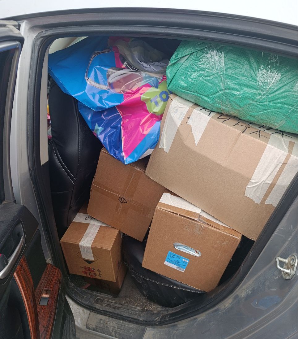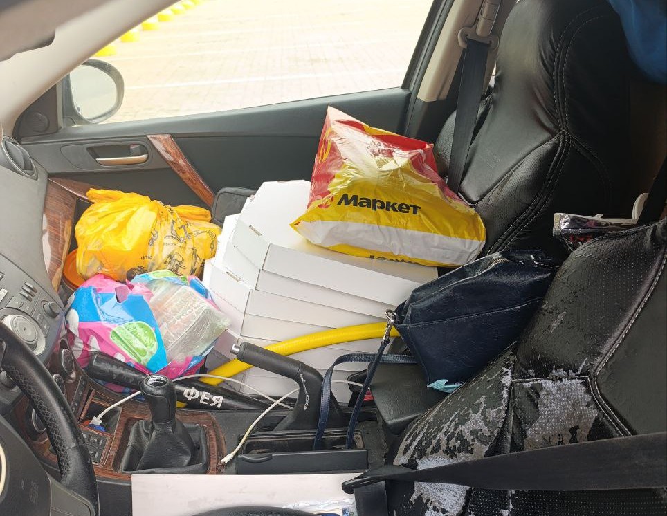 Традиционно в машине закупленное по заявкам солдат, а также то, что нужно всегда: маскировочные сети, продукты, вода, медикаменты, сладости и домашняя выпечка.