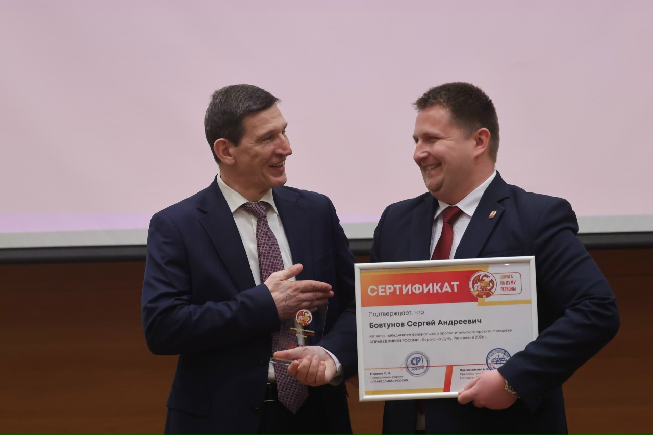 "Очень рад, что стал не только финалистом, но и победителем образовательного проекта СПРАВЕДЛИВОЙ РОССИИ – "ДнД. Регионы". Для меня большая честь получить сертификат и награду победителя лично от заместителя Председателя партии Руслана Владимировича Татаринова", – поделился эмоциями Сергей Бовтунов.